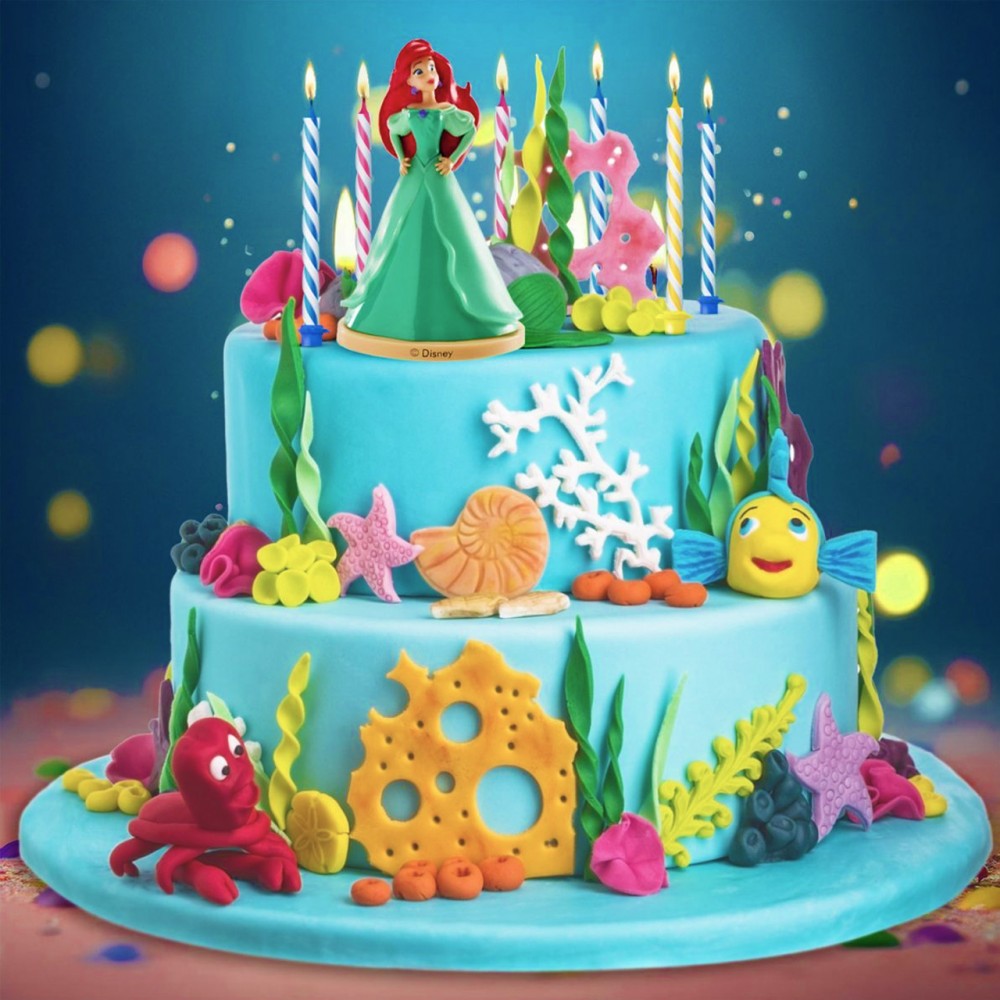 Добавете малко магия към вашата торта за рожден ден с този очарователен комплект с фигурка на Ариел от Дисни! Комплектът включва фигурка на любимата Малка русалка и девет цветни свещи за рожден ден – идеални за принцеско парти или парти с тема Русалки!