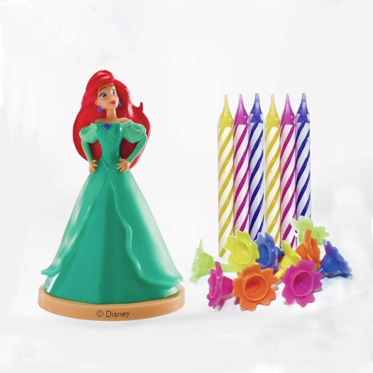 Добавете малко магия към вашата торта за рожден ден с този очарователен комплект с фигурка на Ариел от Дисни! Комплектът включва фигурка на любимата Малка русалка и девет цветни свещи за рожден ден – идеални за принцеско парти или парти с тема Русалки!