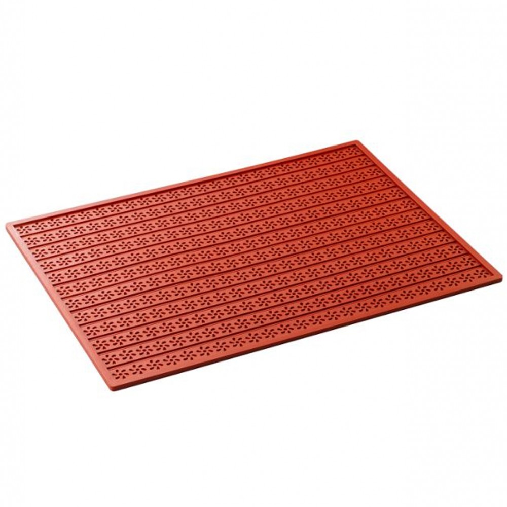 Силиконов килим с релефна щампа „Цвете“, предназначен за създаване на елегантни текстури върху торти, мусове, шоколад, тесто и други сладкарски изделия. Изработен от висококачествен, гъвкав и термоустойчив силикон, който издържа на печене до +230°C и замразяване до -60°C. Лесен за поддръжка – подходящ за съдомиялна машина. Идеален за професионални сладкари и креативни домашни майстори.