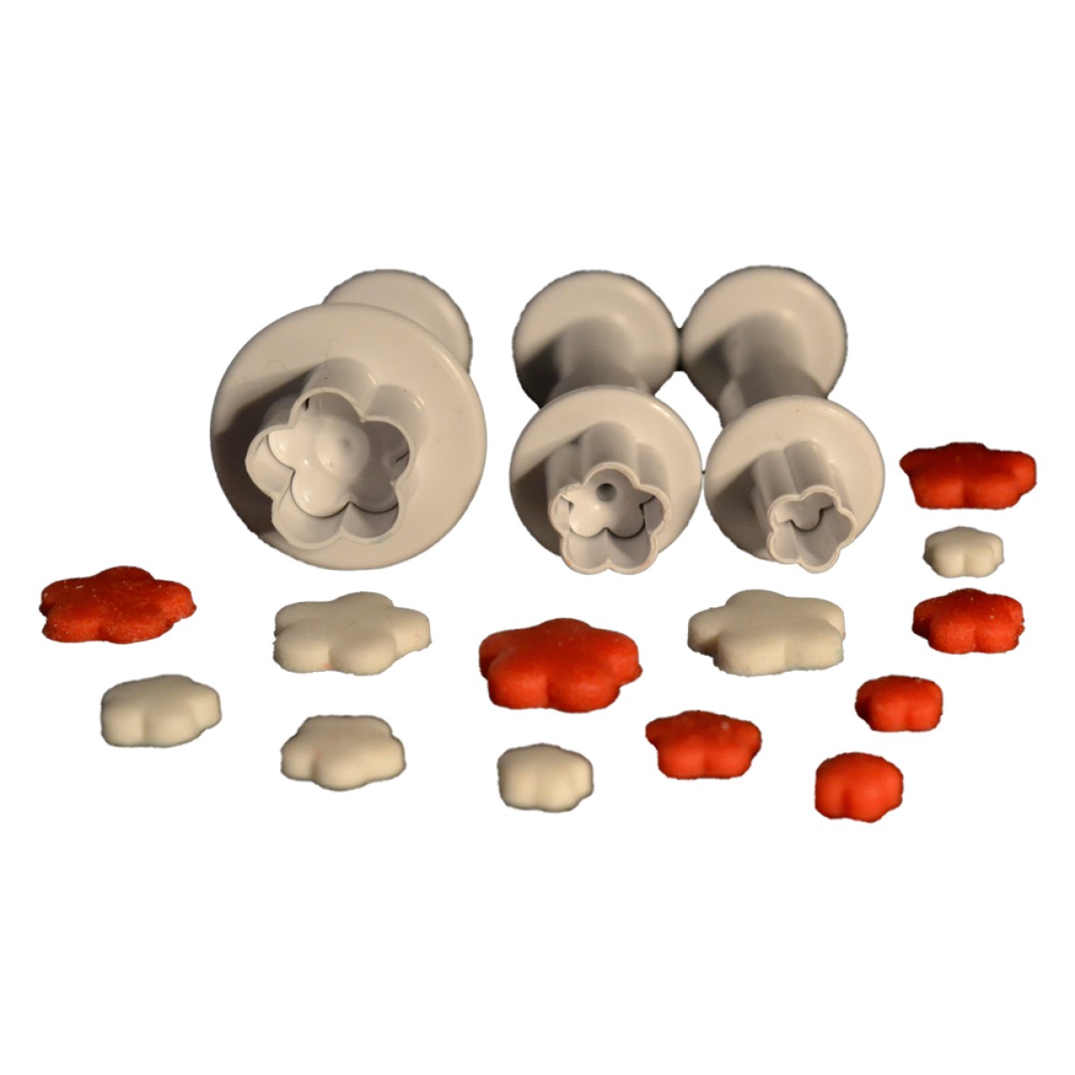 Комплект пластмасови кутери за изрязване и релефно оформяне във формата на мини цветлета и листо.