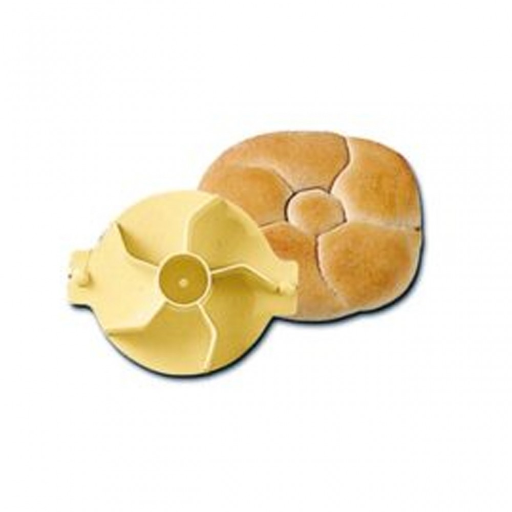Щампа за кайзер хляб с отвор е специализиран инструмент, предназначен за оформяне на характерната звездообразна шарка върху тесто за кайзер хлебчета. Благодарение на практичния си въртящ се механизъм и централния отвор, този уред позволява бързо, прецизно и равномерно декориране на тестото. Подходящ както за професионални хлебари, така и за любители, които искат да придадат на своите изделия традиционен, естетичен и професионален завършек. Просто поставете щампата върху тестото, леко натиснете и завъртете — автентичната кайзер шарка е готова за секунди.
