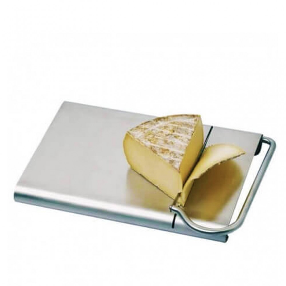 Резачката за сирене и полутвърди изделия с нож и поднос от неръждаема стомана е идеалният аксесоар за фино и перфектно нарязване.