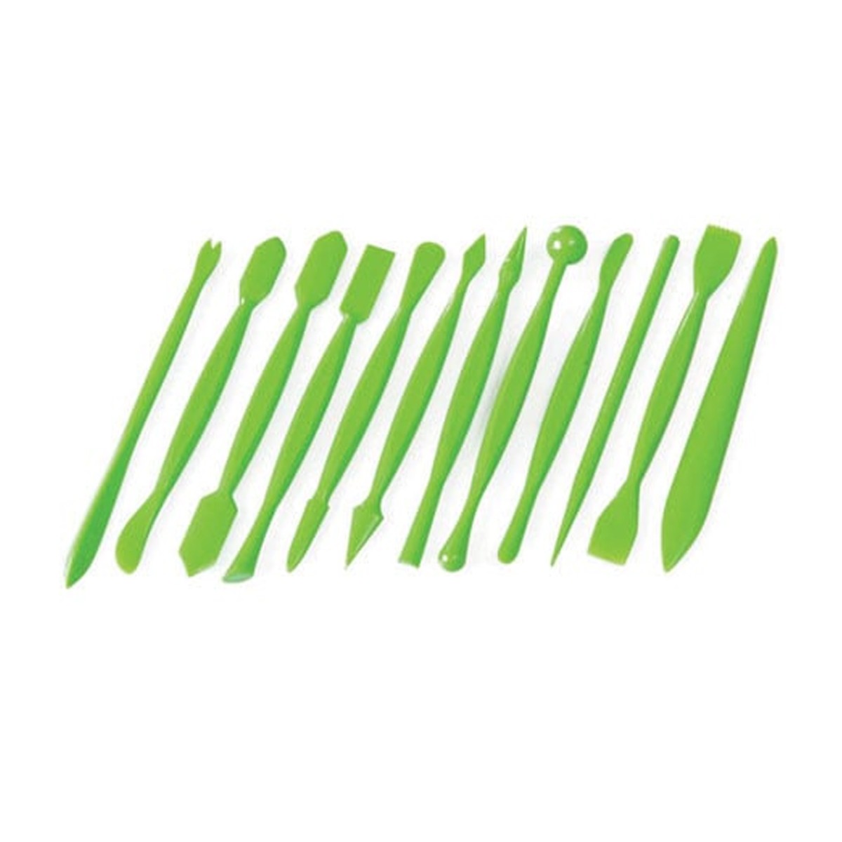 Комплект от 12 прибори за моделиране на тесто,марципан и захарни пасти. Изработени от пластмаса за хранителни цели. С висококачествено покритие приборите ще ви помогнат да реализирате детайлите на декорациите с голяма прецизност и финес.