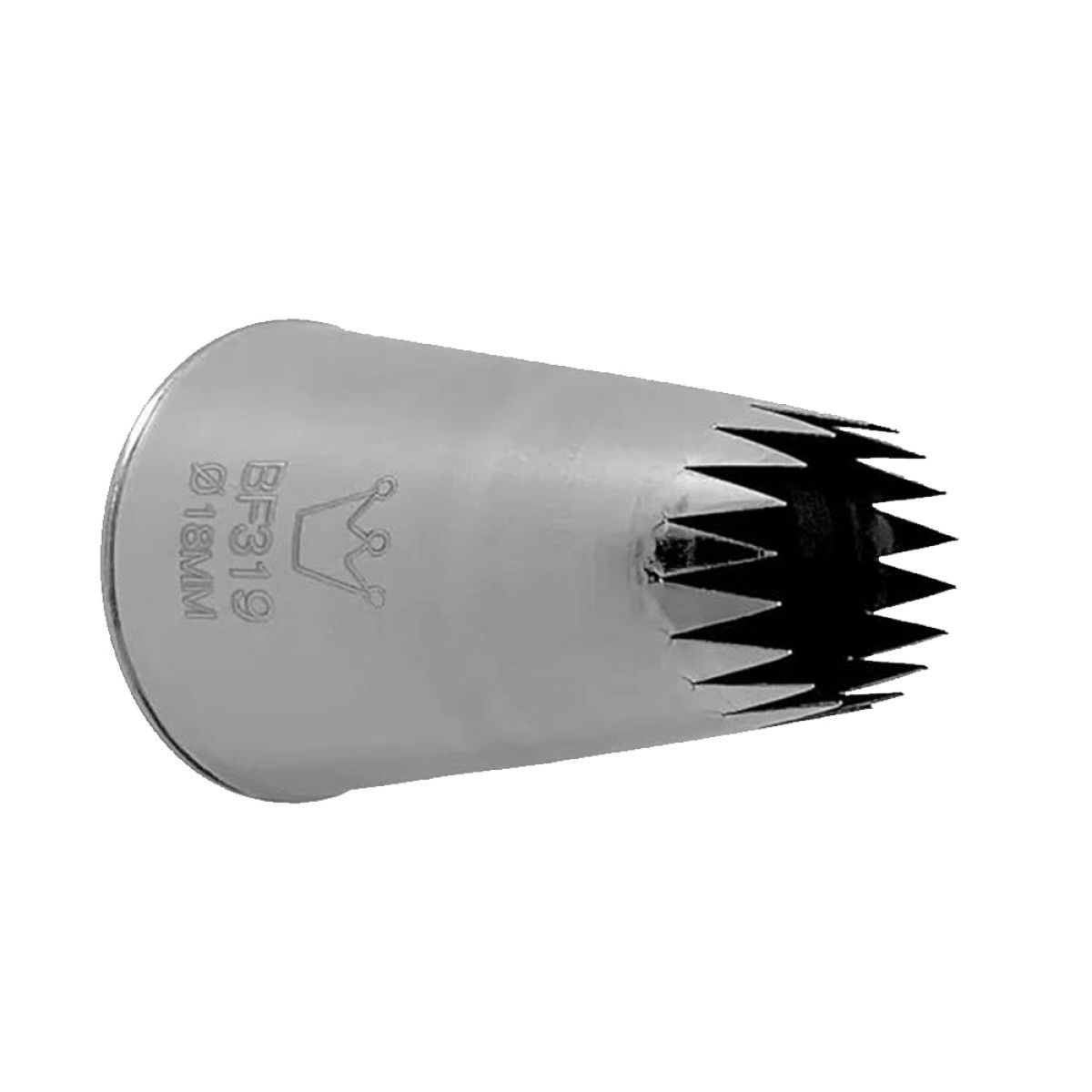 Накрайник от Инокс и неръждаема стомана за изработване на форми - звезди. Може да се използва със стандартен адаптор за шприцове и пошове. Този тип накрайници са чудесен инструмент за декорация на торти, бисквити, мъфини и всякакви други лакомства.