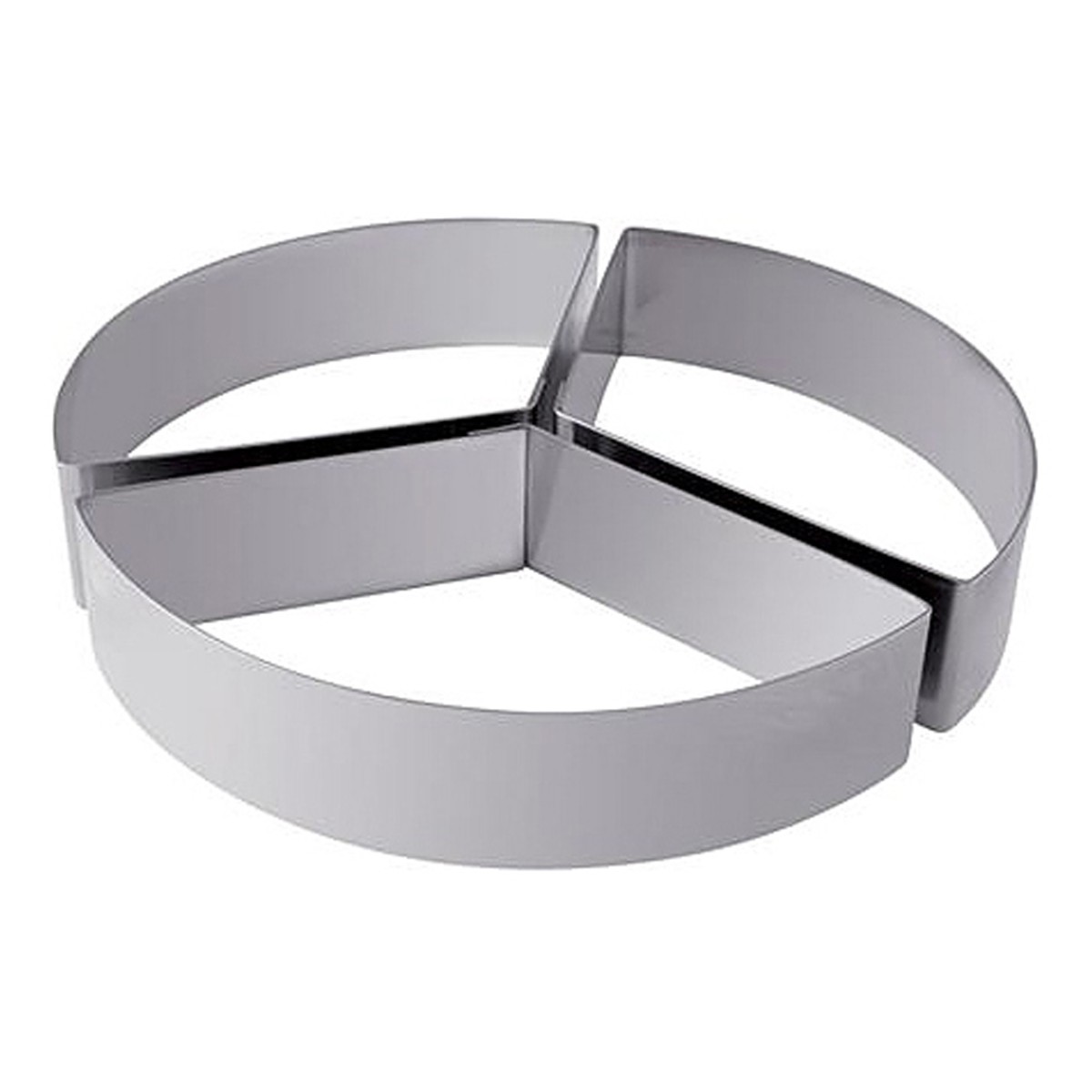 Форма за торта от неръждаема стомана, разделена на три сектора, предназначена за приготвяне на многофункционални торти с различни вкусове в един. С размер 220 мм, идеална за експериментиране с няколко слоя или комбинации от вкусове в една форма.