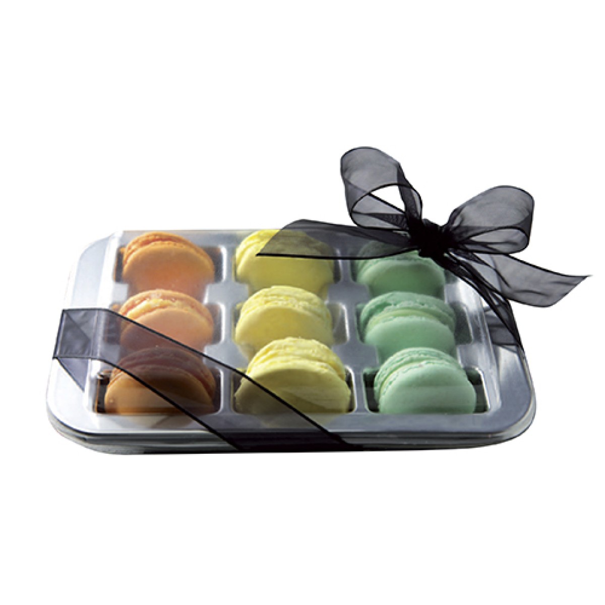 Кутия за френски макарони с 12 гнезда, която предпазва макароните при транспортиране и изглежда красиво при поднасяне като подарък. Кутията за макарон е от професионалната серия на "Alcas", което само по себе си говори за високо качество и максимално добър дизайн. Състои се от 2 части - основа и капак.