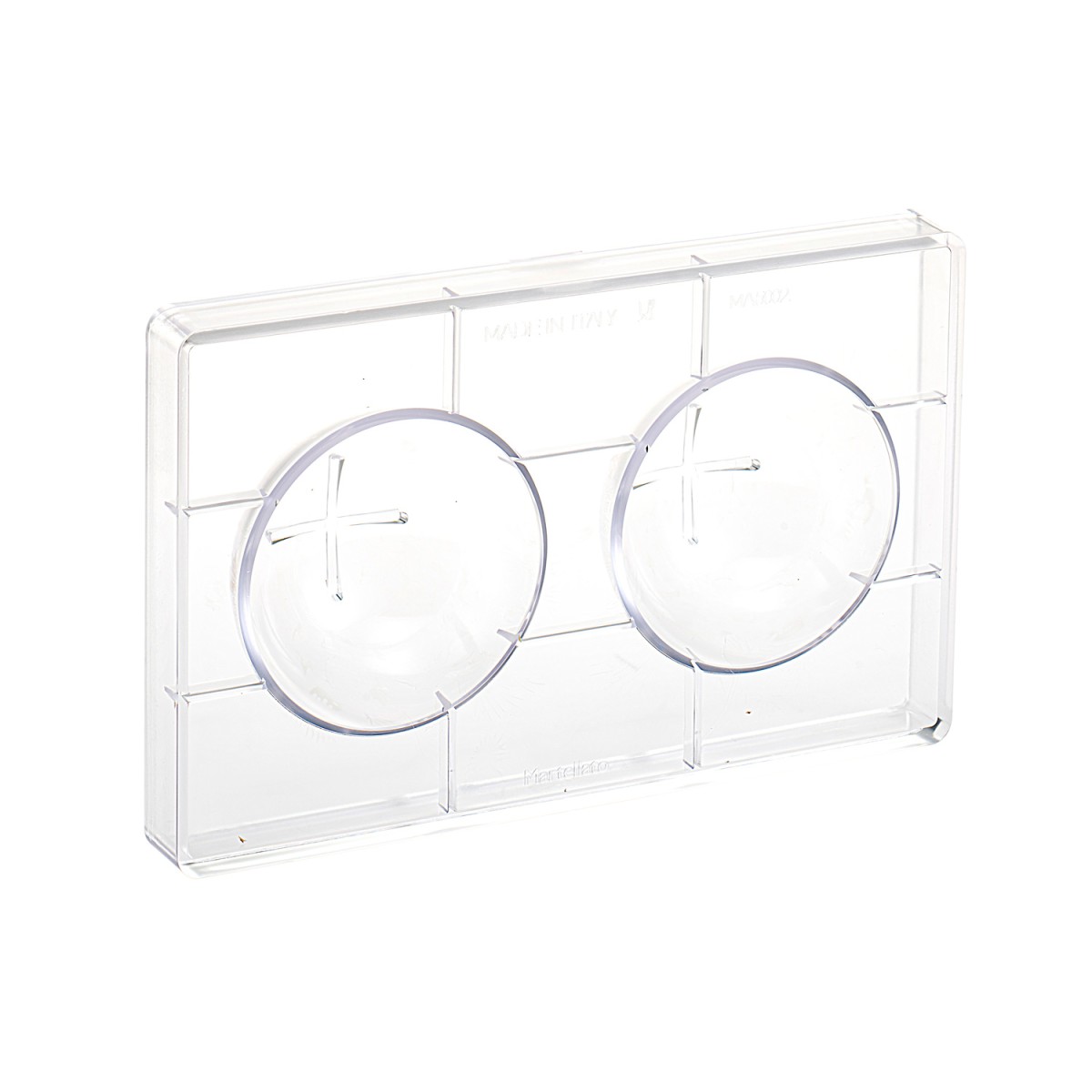 Поликарбонатна форма за бонбони с форма на полусфера и диаметър Ø100 мм, подходяща за направата на части, мидени черупки и други декорации.