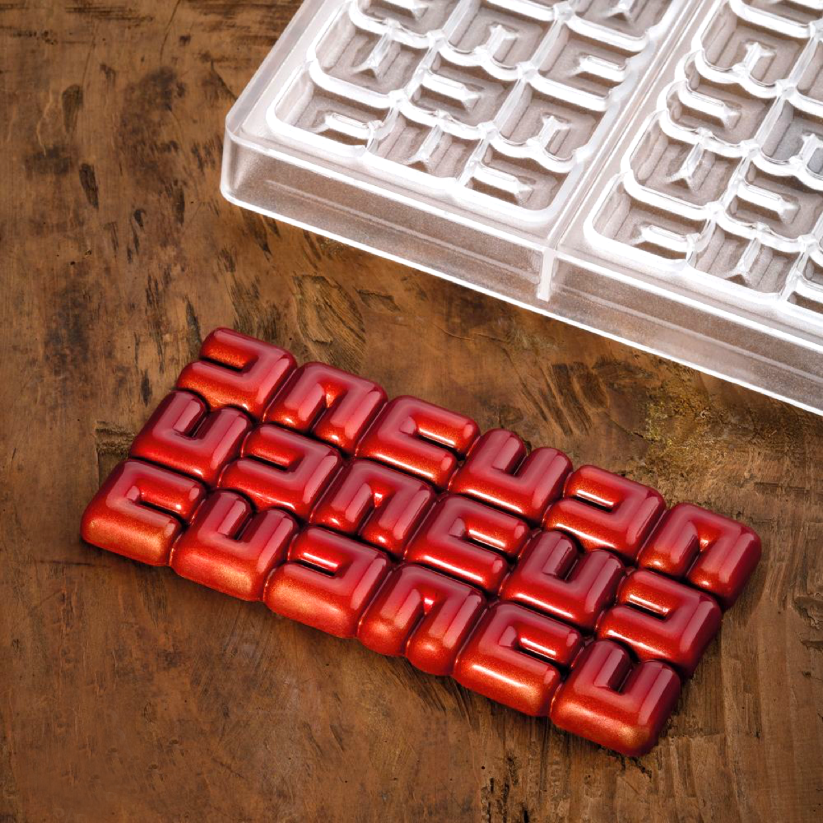 Поликарбонатна форма, подходяща за шоколади или пълнени бонбони. Поликарбонатните форми са здрави и твърди, идеални за пълнени бонбони.