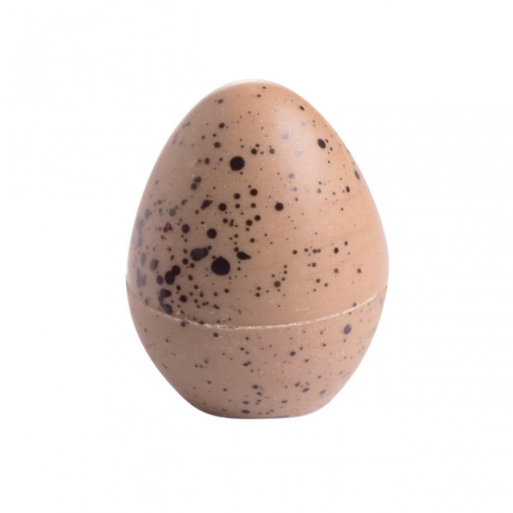Тази 3D форма за пралини е създадена с функции, които я правят изцяло съвместима с One Shot машини за дозиране. Формата позволява лесно и точно изливане на шоколад, идеален избор за всички шоколатиери, които използват високотехнологични машини за автоматично дозиране на шоколад. Със своето иновативно и прецизно изпълнение, формата осигурява безупречно качество и детайлност на всяко шоколадово яйце.