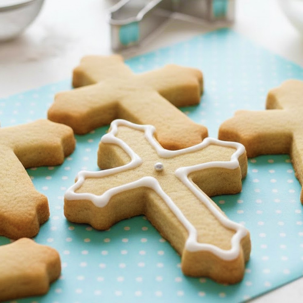 Метален кутер в формата на кръст. Този продукт е прекрасен инструмент за всеки сладкар. Изработен е от висококачествена материал, който може да контактува с храни. С помощта на кутера може да създадете страхотна декорация за вашите сладки изделия или да приготвите бисквитки в различни и атрактивни форми.