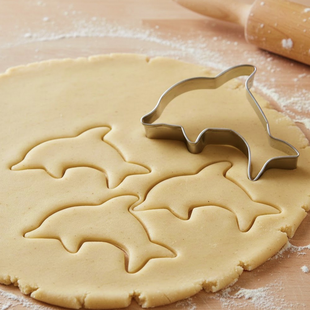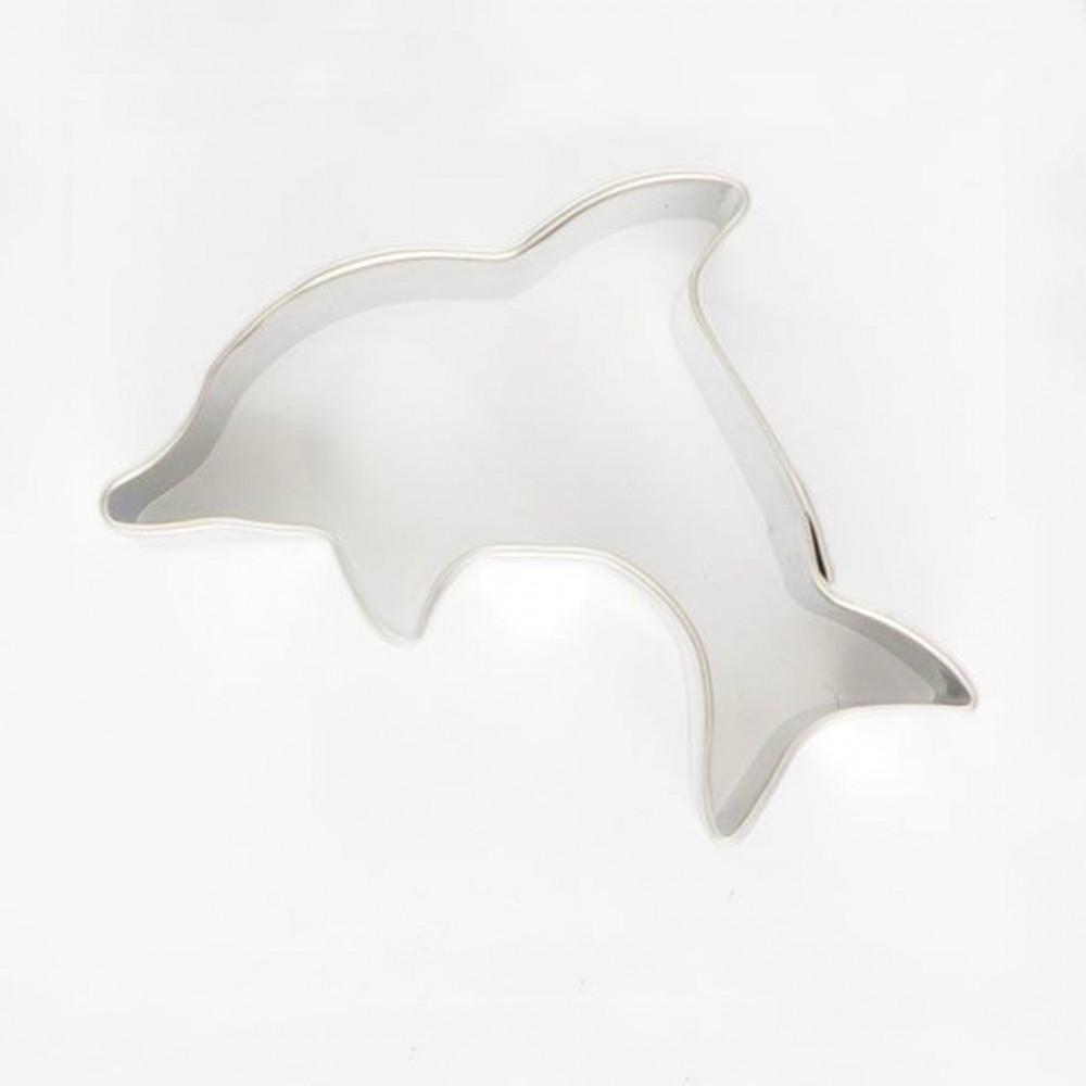 Метален кутери във формата на Делфин. Този продукт е прекрасен инструмент за всеки сладкар. Изработен е от висококачествена материал, който може да контактува с храни. С помощта на кутера може да създадете страхотна декорация за вашите сладки изделия или да приготвите бисквитки в различни и атрактивни форми. Идеален за рязане на Марципан, Фондан, Тесто и подобни.